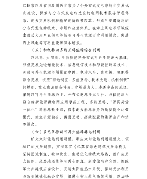 推动分布式发电市场化交易试点。推动苏州工业园区、常州天宁区郑陆工业园、盐城市现代高端纺织产业区、南通海门市余东镇、秦州姜堰区、无锡江阴市以及省内泰州兴化市共7个分布式发电市场化交易试点建设。