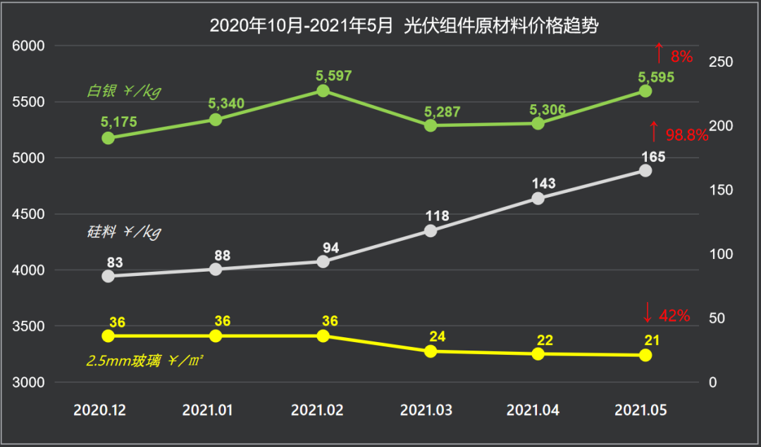伴随光伏组件以及工业原材料价格的不断上涨,大尺寸组件市场化应用进一步加速,其在电站BOS成本节省方面的压制力被进一步放大。