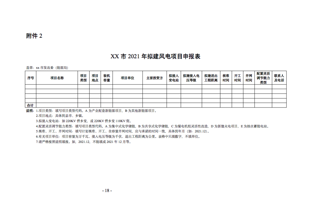 (4)按期完成项目核准(备案)。风电项目必须在2021年底前完成核准。光伏项目已完成备案,备案证上必须明确项目建设规模和项目类型(如,风光互补、光储一体、农光互补、渔光互补等),建设地点必须明确到县市、乡镇。