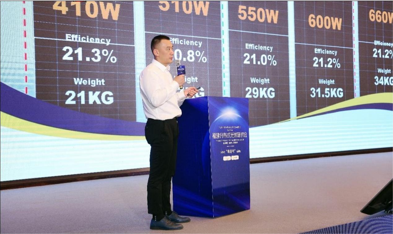 吴雪林表示:“从政策来看,分布式是福建光伏市场主流,选择更合适的产品可成倍助力相关政策落地。截至9月底统计数据,中国区51.66GW招标项目中,210/182、210/166共享版型占比88.7%,166已明显成为过渡,210封装技术已成熟,且成为国内市场主流,高度契合福建分布式光伏市场需求!”