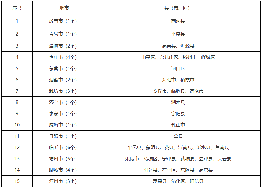 经评估,2024年我省37个县(市、区)分布式光伏出力将向220千伏及以上电网反送电,新增分布式光伏出力无法在县域范围内消纳,包括济南市商河县、枣庄市滕州市、烟台市栖霞市、潍坊市安丘市、临沂市蒙阴县、德州市陵城区、聊城市茌平区、聊城市东阿县、滨州市沾化区等9个试点县(市、区)。试点县中,德州市齐河县新增分布式光伏出力可在县域范围内消纳。详见表1。