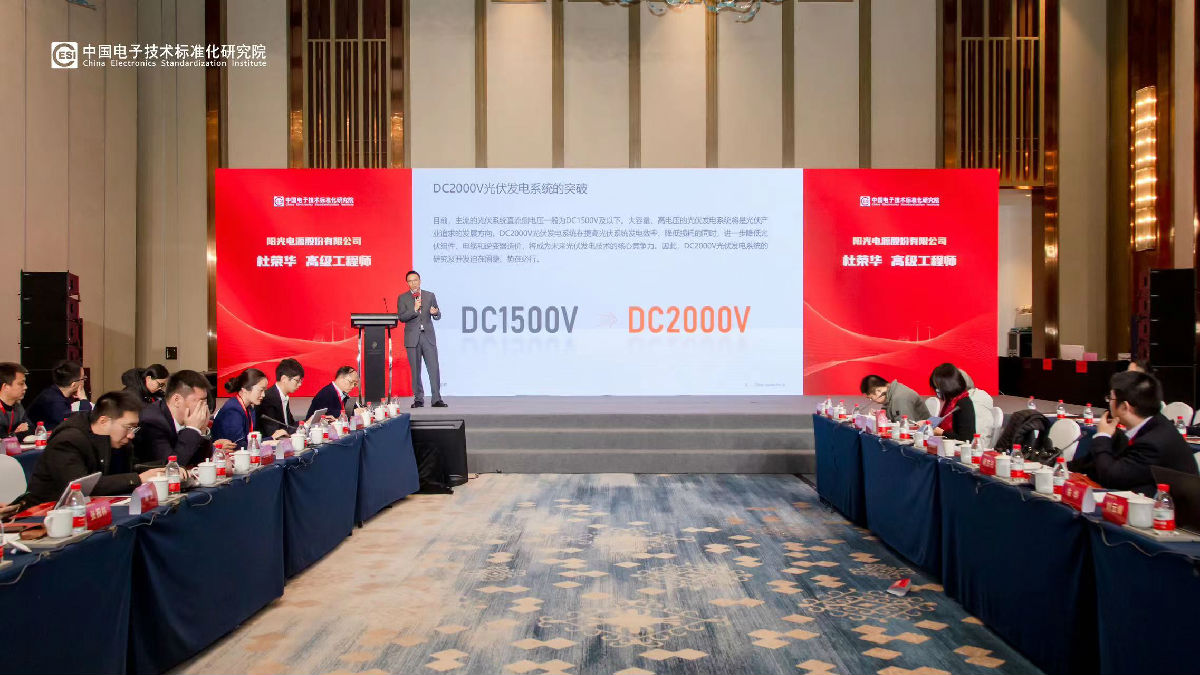 在12月26-27日召开的全国太阳光伏能源系统标准化技术委员会(SAC/TC90)2023年度工作会议暨太阳能光伏国际标准化工作会议上,阳光电源光伏系统标准研究专家杜荣华作《大于1500Vdc光伏系统国际标准发展趋势与展望》报告,提出光伏系统“高压化”发展的同时,行业需加速研制相关标准,为光伏高压化创新提供“标准”答案。