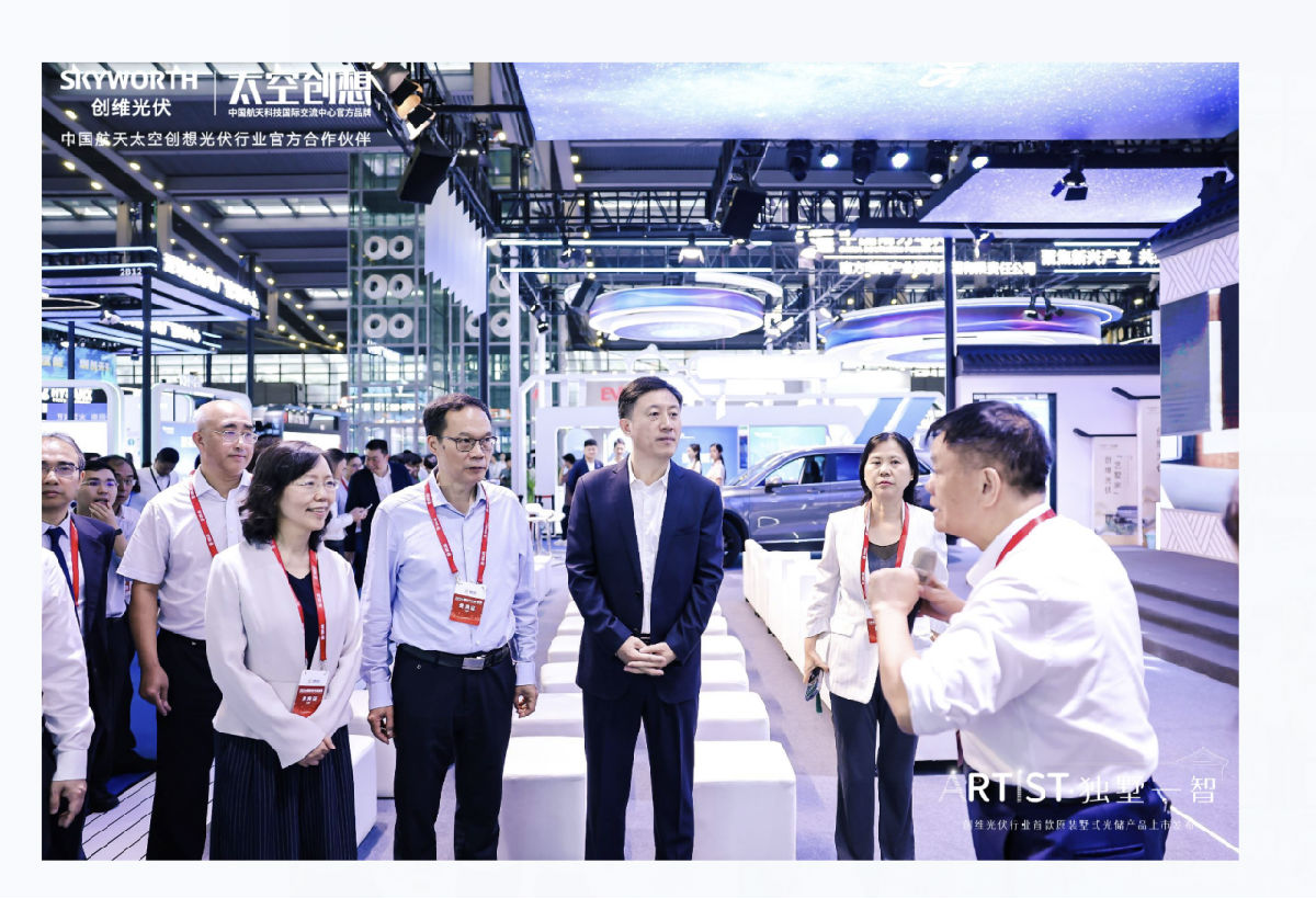 创维光伏 2024年9月11日,深圳国际数字能源展落下帷幕,深圳市委常委、常务副市长陶永欣与创维集团创始人黄宏生等领导莅临本次展会。在这场汇聚了全球能源领域顶尖技术的盛会上,创维光伏以其卓越的新品创新能力和解决方案,吸引众多参展者关注,开幕式前,陶副市长与黄老板共同来到创维展台参观,新品“艺墅家、巧客立、E企赢”更是成为业界关注焦点。