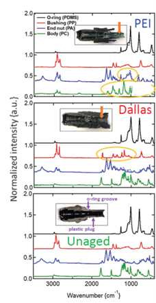 通过对现场退化的连接器进行X-RAY扫描分析,发现内部的连接器一些退化现场,比如鼓簧位置,pin针对插位置,另外通过R-I扫描可以发现电阻随电流变化而呈现的变化趋势进而判断出连接器当前的运行状态。另外对金属pin针基材,镀层元素材料分析,及外壳聚合物材料的一些表征分析也可以用来进一步评估连接器的退化状态。