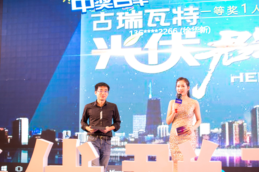 古瑞瓦特总裁丁永强在致辞中向与会嘉宾阐述了古瑞瓦特强根基、促发展、赢未来的品牌规划。用三个“请相信”为现场的嘉宾打了一针“催燃剂”:“第一,请相信古瑞瓦特的技术研发依旧给力;第二,请相信古瑞瓦特的创新能力依旧强劲;第三,请相信古瑞瓦特将会提供最好的服务”。正如丁永强所说,2017年是古瑞瓦特快速发展的一年,2018年对于古瑞瓦特而言将是又一个强劲爆发的周期,光伏群英汇是古瑞瓦特想客户所想,引导客户去探索未来的道路,相信参与其中的客户,将与古瑞瓦特一起,共创共享远大前程。精彩演讲得到了全场一致喝彩。