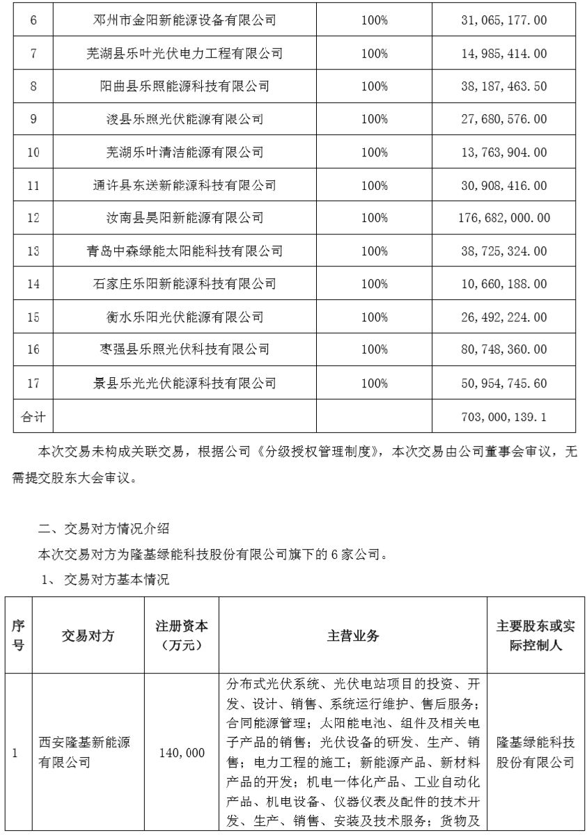 7月2日晚,浙江正泰电器股份有限公司(以下简称“公司”)发布公告称,其全资子公司浙江正泰新能源开发有限公司(下称“正泰新能源”)从隆基股份(601012.SH)旗下子公司购买了17个分布式光伏项目公司100%的股权,涉及容量106.3兆瓦,股权转让总价 703,000,139.1 亿元。
