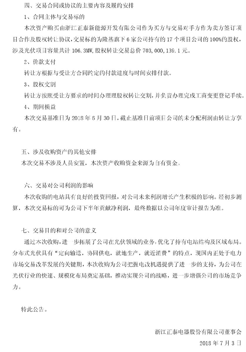 公告称,本次收购,进一步拓展了公司在光伏领域的业务,优化了持有电站结构及区域布局。现国内正处于电力市场交易改革发展的关键期,本次收购为公司把握电改机遇提供了进一步的支持。