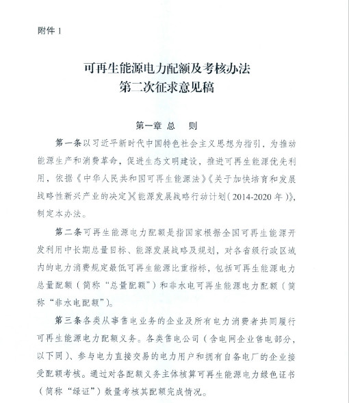 2018年3月23日国家能源局曾经发布《可再生能源电力配额及考核办法(征求意见稿)》,可再生能源配额制历时多年尘埃落定。